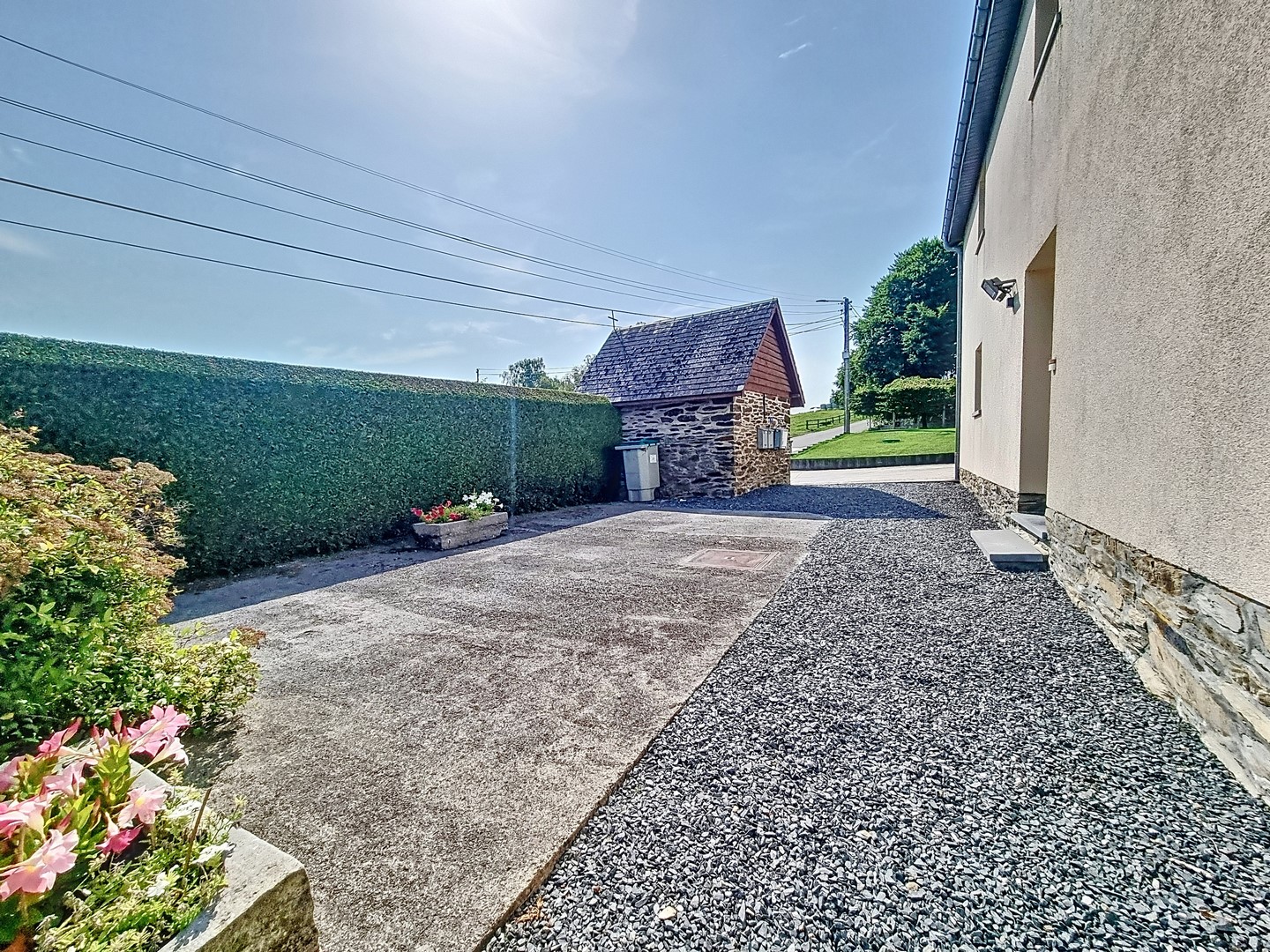 Dans l’agréable village de Tresfontaines (Tenneville), bel appartement en parfait état, très lumineux et entièrement rénové : Annexe : Grande pièce de stockage et carport.